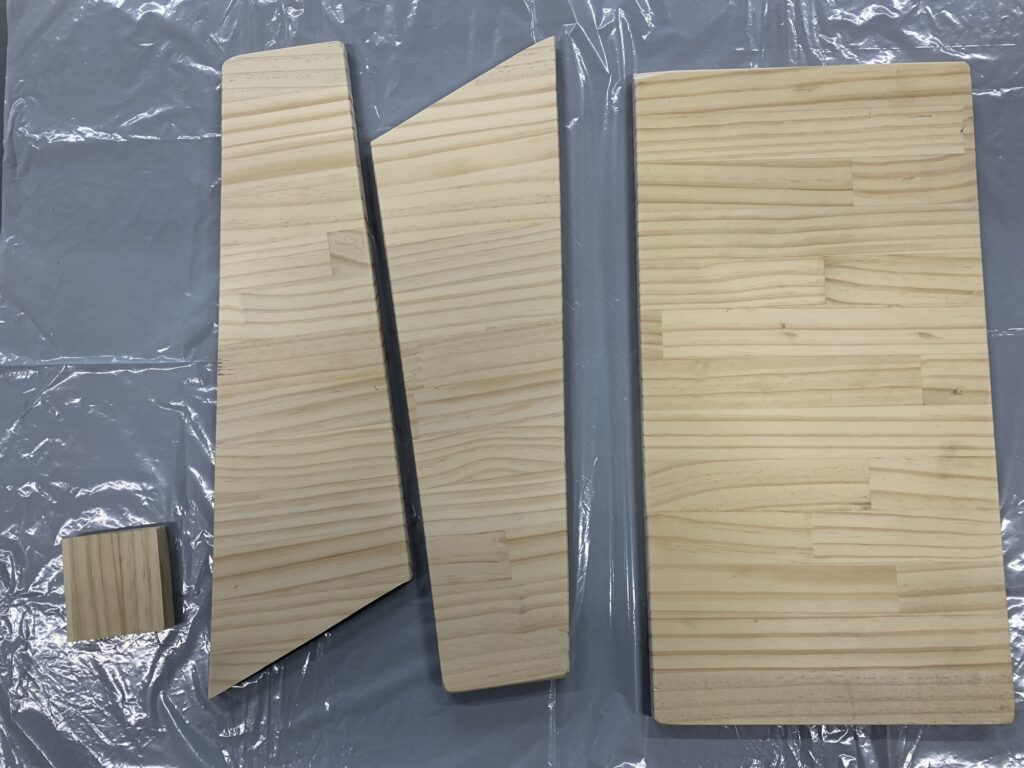 とはいえ、それで妻の夢を潰すのか?・・・否である。夢をコスパで切り捨てるなんて死んでもやりたくないことのひとつです。そんな経緯で私のASOBI-Lab魂に火がつきます。道具がなくて楽しめない?ならば作ろうぜ、と。ガレージにはこれまでのDIYで用いた端材たちが転がっています。その中でひときわ光を放つ45 x 90cmほどの集成材。(確か娘の椅子を作ったあまりだったかな?)娘の道具を作り出した端材が妻の夢を叶えるなんて素敵じゃん。キミに決めた。さぁここからは持ち前のフットワークを活かして即行動。図面も特に引かずに「まぁ行けるしょ」と見切り発車で出発進行。ご乗車ありがとうございます。快速ASOBI号、ガレージ発・妻の夢行きでございます。