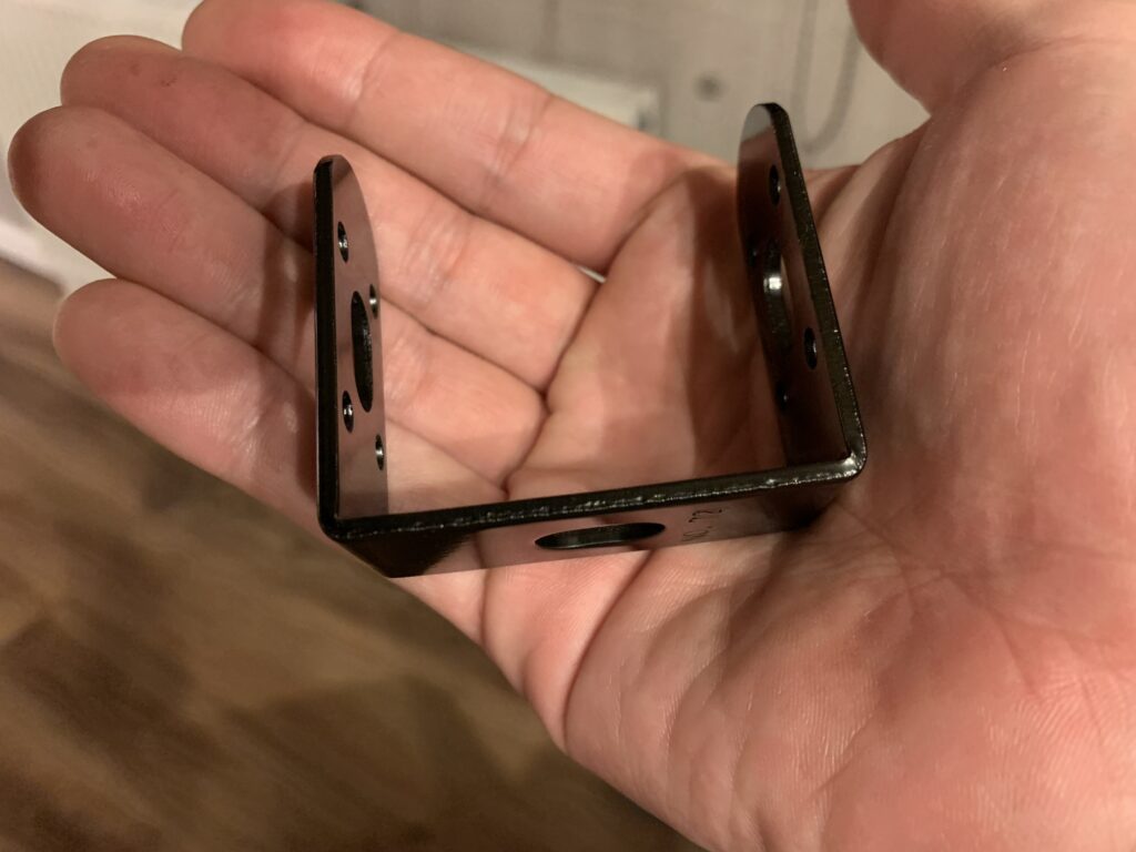 原木の下側を支える部分は工具箱に眠ってたよくわからないコの字の金具を使用。
