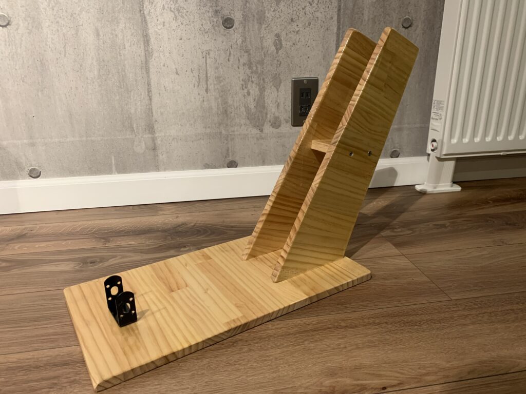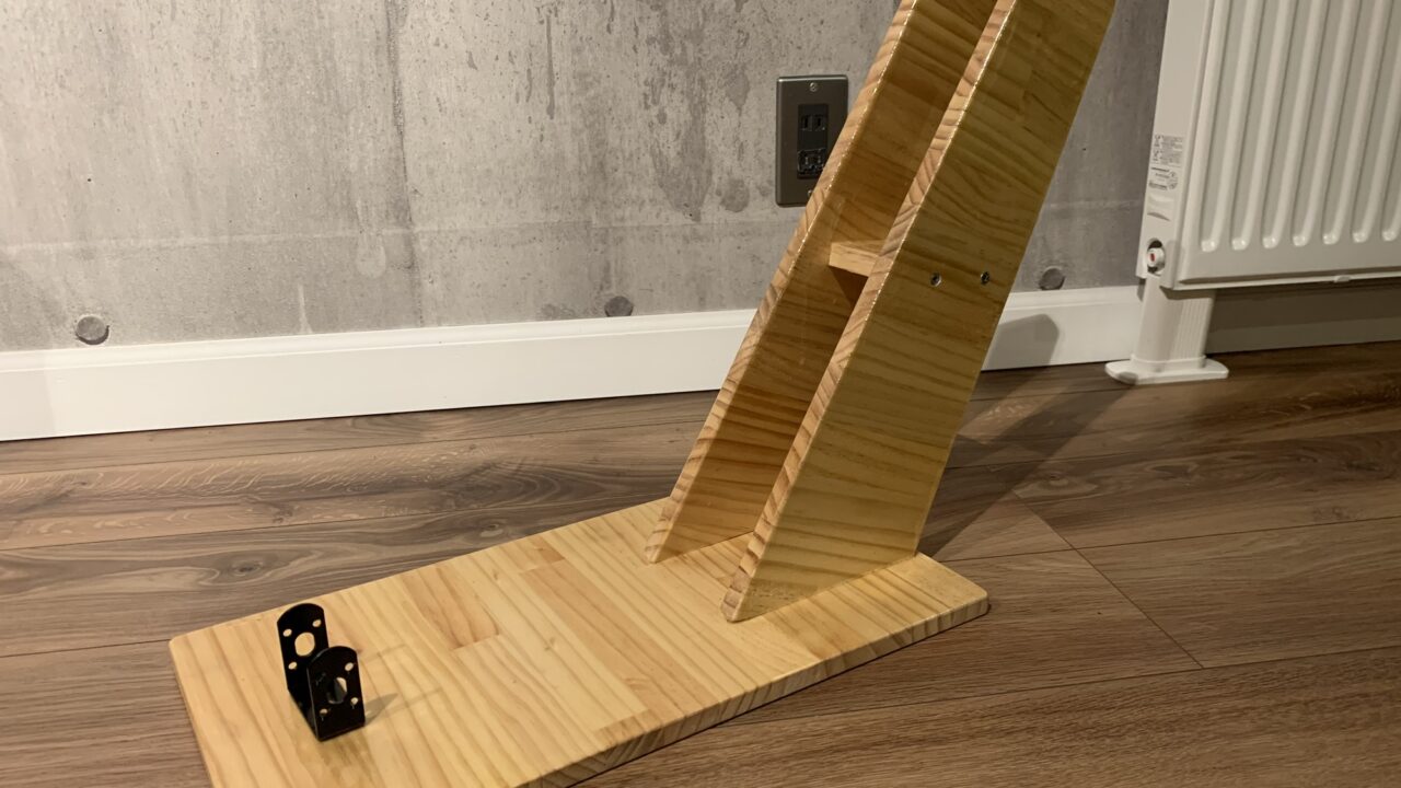 でやってみました。作業中の安定性は良かったのですが、2本のスタンドの底面を揃えるのに少し苦労しました。台座に固定する部分は作業中に力が掛かりそうなので、長めのビス(5cm)を使用。